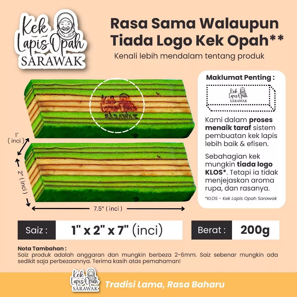 Nikmati keunikan rasa Kek Lapis Opah Sarawak. Sesuai untuk majlis istimewa dan perayaan, kek ini terkenal dengan warna yang menarik dan rasa yang memikat.